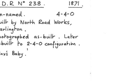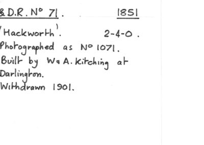 The John Proud collection consists of a number of photographs of locomotives, S&DR houses with the distinctive S&DR plaques and S&DR buildings and structures, mostly taken by John Proud in the 1970s. The collection has been scanned by Susan Nixon and Jane Hackworth-Young. However some of the collection consists of photographs copied, with permission, from other sources by John Proud. We have removed these from this online version of the collection to avoid breaching copyright. Those that remain on this page are available to use courtesy of John’s wife, Win Proud. If images are used in publications whether online or not, or in talks, please use the following acknowledgement: