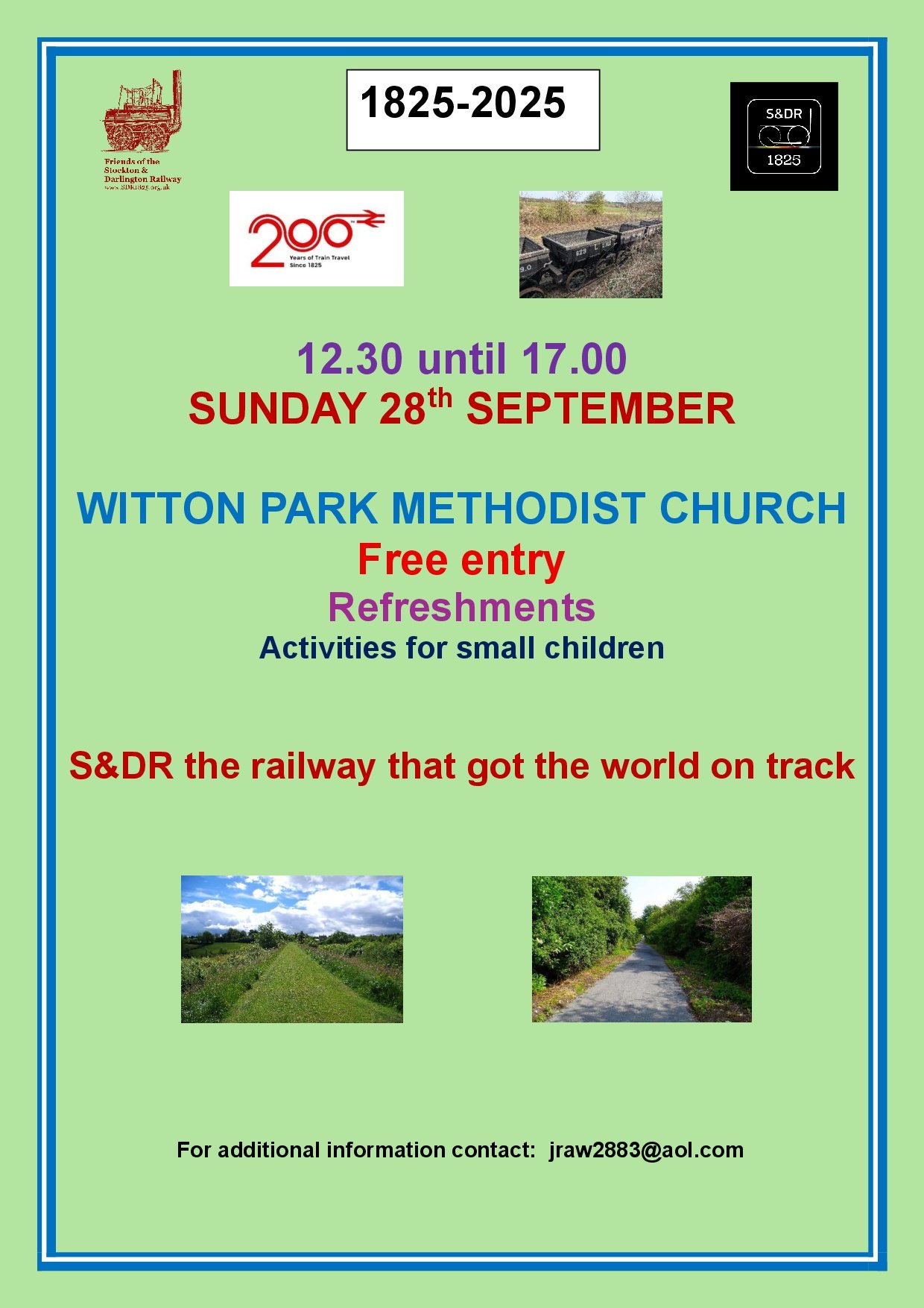![]() Join the Etherley Incline Group for a Railway Exhibition to mark the Bicentenary of the opening of the S&DR at Witton Park Methodist Church between 12:30pm and 5:00pm. Contact John Raw for more details about this event. jraw2883@aol.com |
