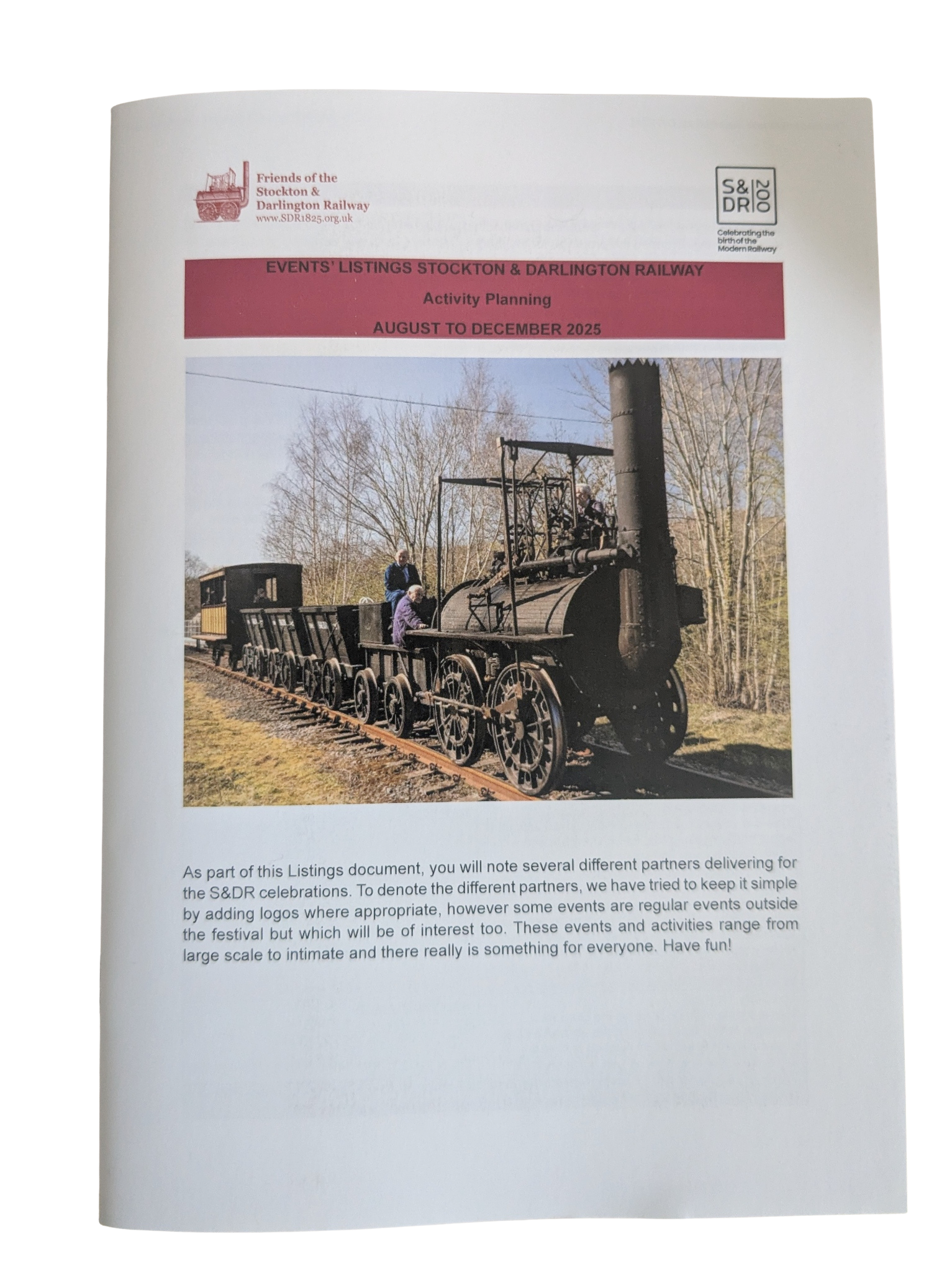Our handy event guide is your ticket to a wide range of events celebrating S&DR200. It lists the majority of the events that are taking place day by day to help you plan your visit to the S&DR. This 64 page booklet is packed full of events big and small.