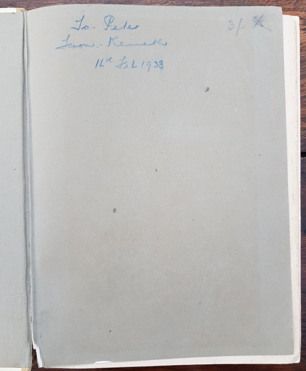 The book covers are a little scuffed as you can imagine with it being so old. The binding is also beginning to come away (see photos), but Peter took care of his book and there are no pen marks or scribbles, just a little yellowing with age. Like all 90 year olds it needs gentle handling!