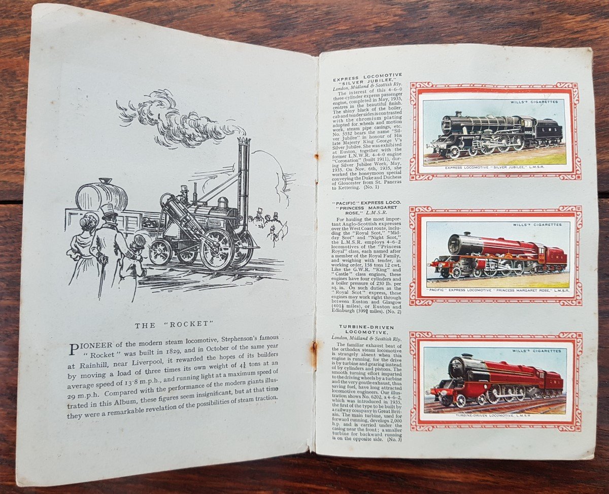 In the 1930s smokers were encouraged to collect cigarette cards which were inside their packet of cigarettes, on various themes and mount them in an album by Wills, a branch of the Imperial Tobacco Company. The album cost one penny, but the health costs were probably somewhat higher. This album was for cards featuring railway engines and starts with the big names running in the UK and then moves on to international engines. There’s no need for you to light up though, you can have this lovely set, minus only two cards, for a smoke-free tenner. Any lingering smell of smoke has long gone…..